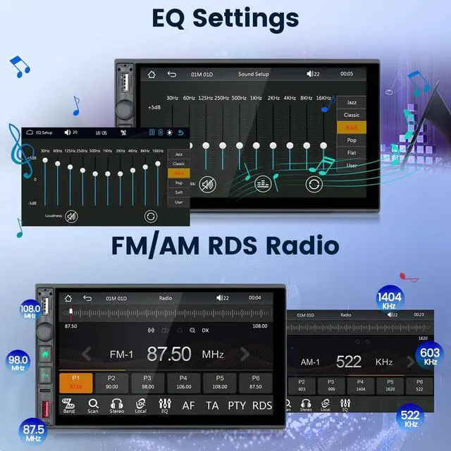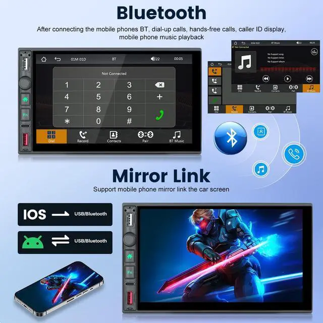 Panel Function Buttons: Mirror Link support for IOS and Android phones (no version limitation) allows you to mirror your smartphone's screen using a USB connection, displaying maps, Spotify, Youtube, and more on a large screen. 7-inch HD touchscreen with 1024 X 600 resolution supports 1920 X 1080P video playback. Physical buttons make it easier to use while driving, especially the rotary volume control. ^^ FM/AM RDS Radio & HD