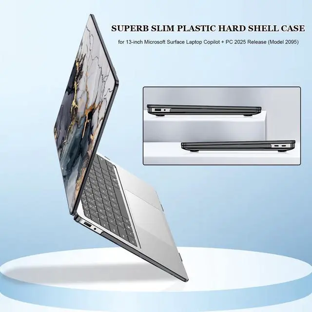 Perfect Fit & CompatibleSpecifically designed for Microsoft Surface Laptop Copilot + PC 13 inch Touchscreen (Windows 11) 2025 release (Model number: 2095). Please check that your laptop model is 2095 before purchasing (Note: different models correspond to different case, Not compatible with any other models Microsoft Surface Laptop), this case offers a precise fit that ensures full protection for your Microsoft Surface 13 inch 2095. ^^ High-Quality Material & ProtectionMade of hard plastic, unique 3D UV painting to add something different and colorful to your Microsoft Surface laptop 13 inch. Its built to last, offering long-term protection for your laptop while against scratches, bumps, and daily wear and tear, keeping your model 2095 Microsoft Surface laptop looking as good as new. ^^ Precise Cutouts & Easy Installation RemovalThe precise cutouts allow easy access to all ports, buttons, and features without removing the case. Our protective case has micro clips that securely fastens to your laptop, and snaps off with easy when needed. ^^ Ventilation & Heat DissipationFully vented for safe heat disbursement. The vent slots at the bottom of the case can easily keep your Laptop cool. The four rubber feet can safely keep your device stable. ^^ Complete BundleThe package includes 1 printed pattern top case, 1 clear bottom case, 1 matching color keyboard cover, 1 HD screen protector and 2 webcam cover.