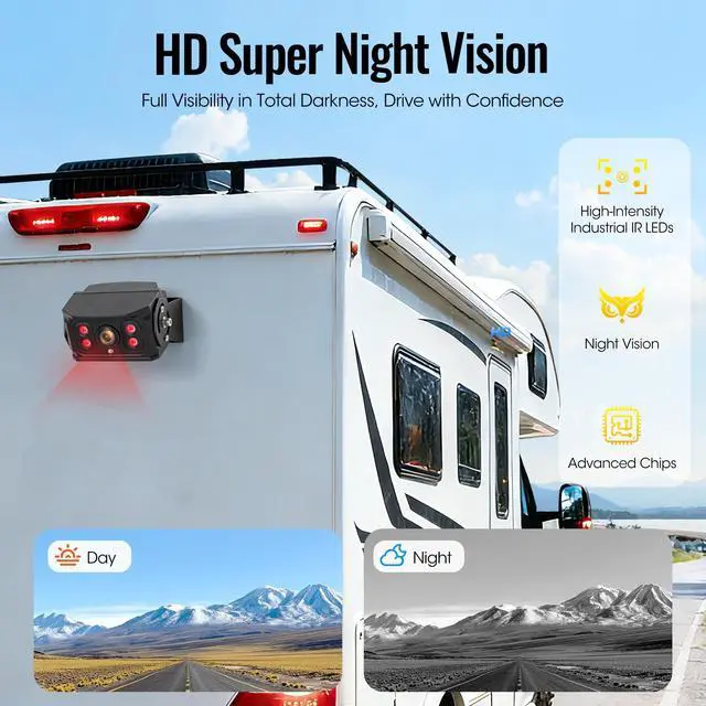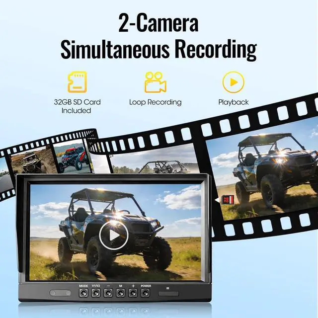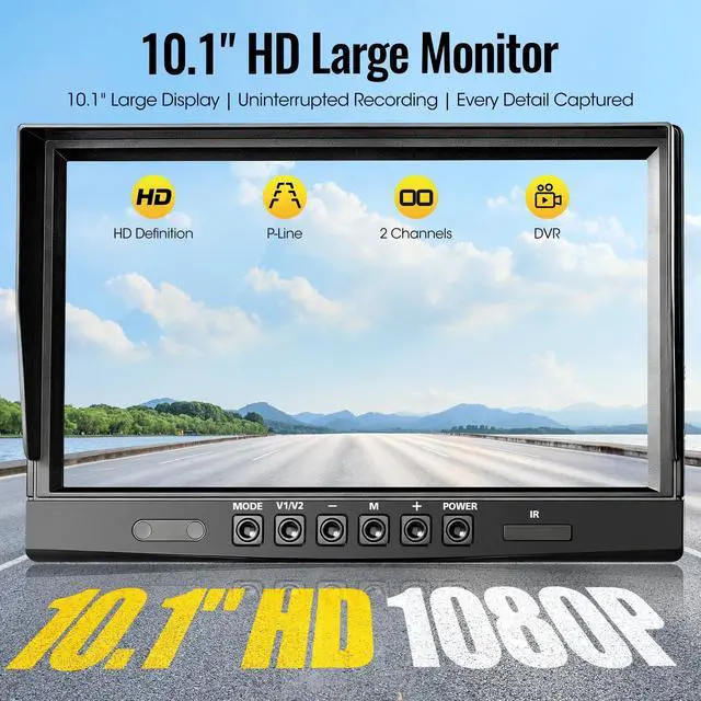 2026 Upgraded AHD1080P Backup Camera SystemBuilt tough for any job site or road, this camera is housed in durable all-metal to handle intense vibration and perform reliably in both freezing cold and blazing heat (-4F to 158F). Its the versatile choice for a wide range of vehicles: from commercial fleets like buses and RVs, to construction workhorses like excavators and forklifts, and agricultural equipment including tractors and combines. ^^ 10.1" HD Large Monitor with RemoteDrive with confidence. Engineered for heavy vehicles, this screen protects itself from electrical spikes while showing you clear, lag-free video from two cameras. Set it up in minutes with the versatile mounting kit (bracket and suction cups included). Adjust your view easily with one-touch mirror/flip controls. Its built to last, works anywhere, and includes a convenient mini remoteremove the insulating sheet, and you're good to go. ^^ Dual Waterproof and IR Night Vision CamerasDesigned for demanding conditions, each camera features IP69K waterproof protection and 20G shock resistance. The extension cable includes a reverse trigger wire and aviation-grade waterproof connector for easy installation on most vehicles. A 149 wide-angle lens provides sharp 1080P true-color imaging, while enhanced IR LEDs ensure clear visibility in low light, making this set ideal for monitoring in darkness or rain. ^^ Easy Installation You have two setup options: 1) For continuous monitoring, connect Yellow to DC 12-24V positive, Red to ACC, and Black to groundleave the trigger wire disconnected. 2) For automatic reverse activation, after making these connections, attach the trigger wire to your vehicle's reverse light circuit. This allows the camera to turn on and display the rear view automatically when shifting into reverse gear. ^^ Intelligent Loop Recording & Playback SystemEngineered to support safer reversing, the 1080P HD display offers sharp imaging while automatically recording driving video in a continuous loop for reliable record-keeping. Playback is quick and simple through the onboard monitor interface. (Ready to use with included 32GB SD card; expandable storage supports cards up to 128GB. ) ^^ Advanced Parking & Display FeaturesBy activating the parking guidance lines on the display, users can park more accurately with minimal input. The inclusion of one-touch image orientation adjustment (mirror/flip modes) further allows the system to be tailored to diverse camera placements and vehicle specifications. ^^ Worry-free ServiceEnjoy peace of mind with our 18-month warranty and product replacement commitment. If you receive damaged or incomplete items, please get in touch with our support team promptly.