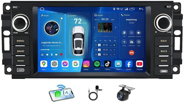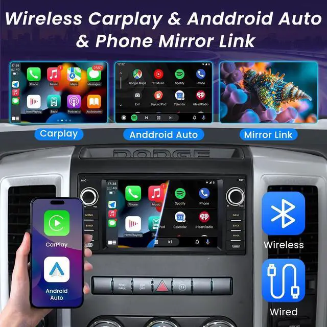 Applicable Car ModelsRadio fits for Dodge RAM 1500 2500 3500 2009 2010 2011 2012. Please check your vehicle's year, size and centre console shape before purchasing. Upgrade 4 Core operation system, 2G RAM +64GB ROM, you can enjoy an enhanced audio experience. Advanced technology ensures clear and crisp sound quality, allowing you to immerse yourself fully in your favorite music or radio programs. ^^ Wireless Carplay Android AutoThis radio is equipped with the latest technology of wired/wireless CarPlay and Android Auto. You can choose to connect your phone to access your phone contacts, emails, notifications, map navigation, music, videos and other information, and realize voice control.