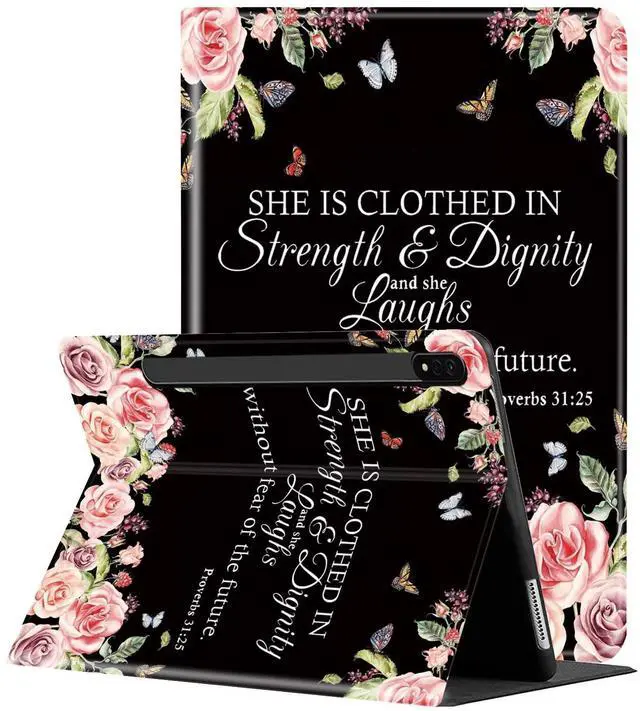 Case for Samsung Galaxy Tab S8 Plus 2022/ Tab S7 FE 5G 2021/ Tab S7 Plus 2020 Tablet 12.4-inch, Multi-Angle Bracket with Automatic Sleep/Wake Protection Case - Proverbs 31:25 Flower