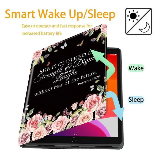 • Support wake up/sleep-Built-In magnetic stripe, iPad case supports automatic wake up/sleep function, save energy and extend battery standby time when covered.