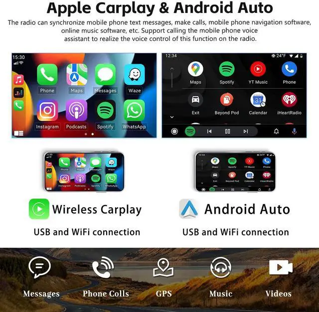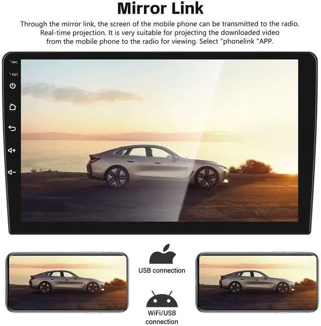 Carplay, Android AutoThe android radio can synchronize the phonebook, email, notification, map navigation APP, music APP on the phone to the radio, and support call mobile phone voice assistant for voice control. Keep the mobile phone WiFi switch on. Connect Bluetooth, Open the "ZLINK5"APP to automatically connect. Or use a USB cable to connect the phone and then open the "ZLINK5"APP. ^^ Mirror Link, Split ScreenThrough the mirror link, the screen of the mobile phone can be transmitted to the radio. It is very suitable for projecting the downloaded video from the mobile phone to the radio for viewing.