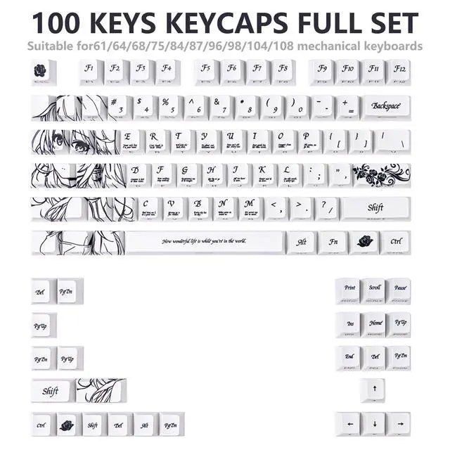 ^^ Cherry Profile Keycaps: White Japanese Anime keycaps are made of cherry profile, which is ergonomic and very popular keycap, cherry keycaps provides you with a more natural and comfortable typing experience. ^^ Japanese Anime