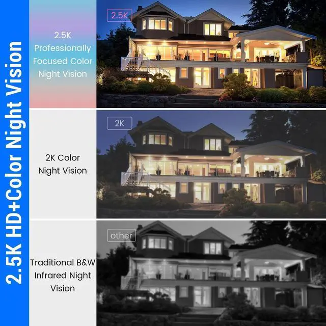 • 2.5K Ultra HD Picture Quality & Color Night Vision:Equipped with a 4-megapixel lens and 2.5K (25601440) ultra-high-definition resolution,it delivers stunning video performance;Even in low-light environments,it can excellently display full-color images,ensuring no critical details are missed and safeguarding nighttime security