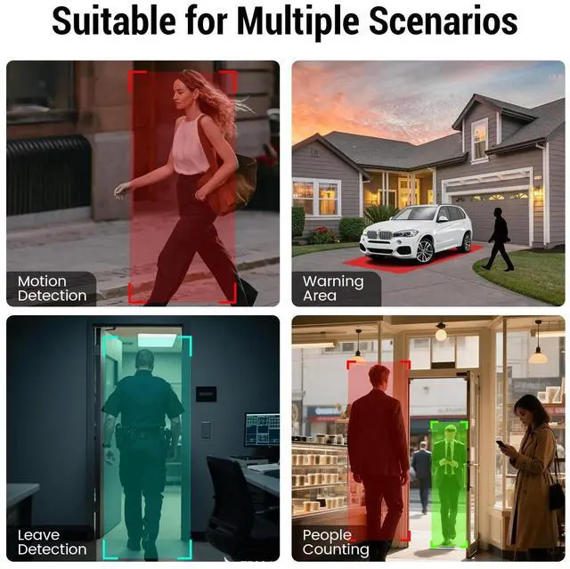 • NO Subscription Fees & Timely alert notifications: All features are available without any subscription fees. It supports customizable motion detection zones; once someone is detected approaching, the device will promptly react by sending push notifications to your phone, sounding an alarm, and automatically recording videoeffectively deterring intruders