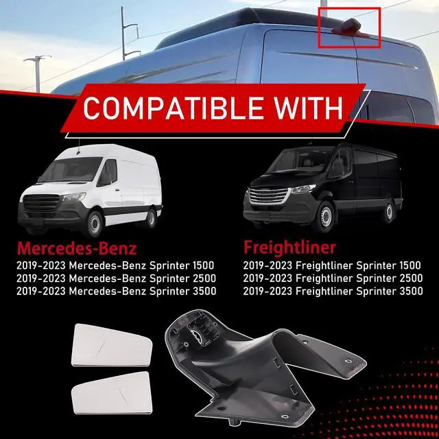 Compatible With: 2019-2023 Mercedes-Benz Sprinter 1500/2500/3500; 2019-2023 Freightliner Sprinter 1500/2500/3500. This Backup Camera Housing installs perfectly, requiring no modifications for a simple and efficient setup ^^