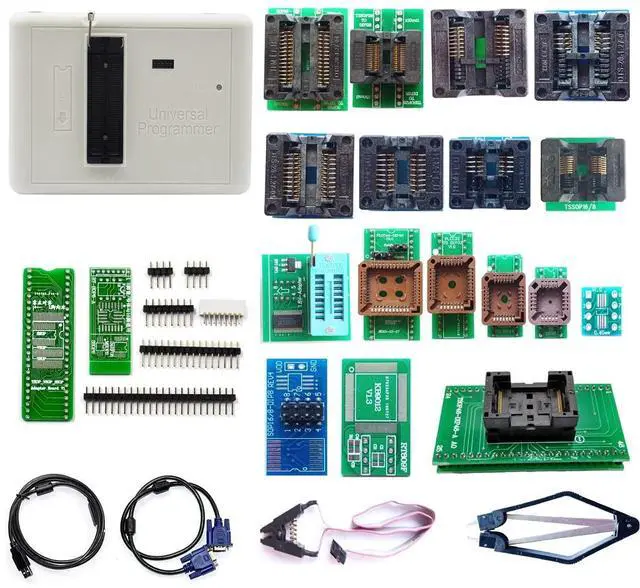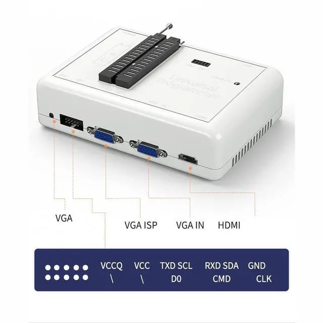 5: SELFTEST, the self-test test can detect whether the programmer is faulty. When most types of chips are read and written offline, they support the functions of intelligent identification and random placement High-speed USB interface, WHQL certified USB driver, read and write speed up to 25MB/S All-wheel drive architecture, free software upgrades, universal adapters as much as possible, reducing usage costs for users The Only universal programmer which can automatically detect chip number for all Chips. The only universal programmer which can put ic in any position and make intelligent sense. The Only universal programmer Support Read and program Laptop I/O via keyboard line. The Only universal programmer Support Read and Program LCD TV VIA VGA and HDMI PORT. Support UPTO 64GB
