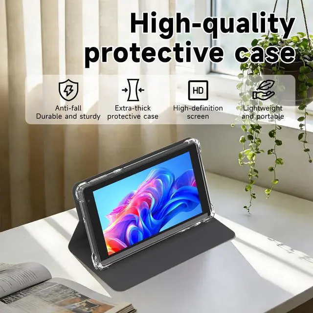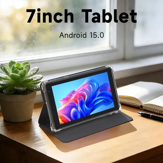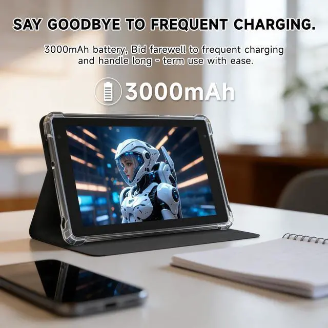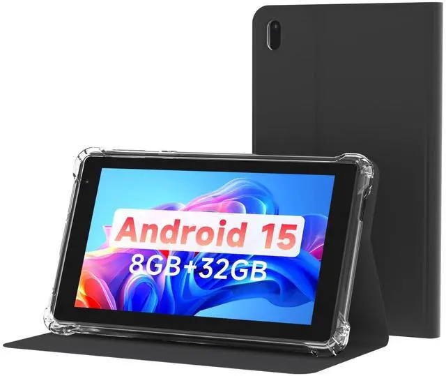 Tablet: 8GB RAM and 32GB storage, supporting multitasking. Features an 8MP rear camera and 2MP front camera, with dual-band Wi-Fi 6 ( 2.4GH z/5GHz) connectivity. Includes a 3000mAh battery, Android 15 OS, and comes with a tablet case. Ideal for daily office tasks and entertainment.
