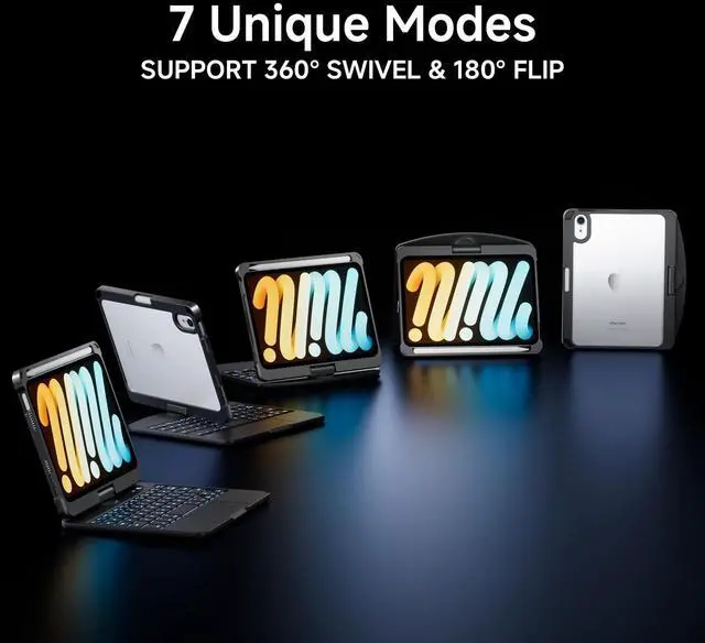 ^^ Precise Trackpad: The multi-touch trackpad on the iPad Mini 7 and iPad Mini 6 case with keyboard provides precise responses for editing, browsing, and watching videos. It transforms the iPad Mini 7 and iPad Mini 6 into laptop-like devices, boosting productivity and creativity. ^^ 360 Rotate & 180