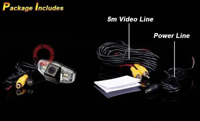 Package Contents: 1 x Car Rear view Camera1 x Power Cable ( 1.5 m/ 4.9 ft)1 x AV Cable (6m) 1 x User Manual