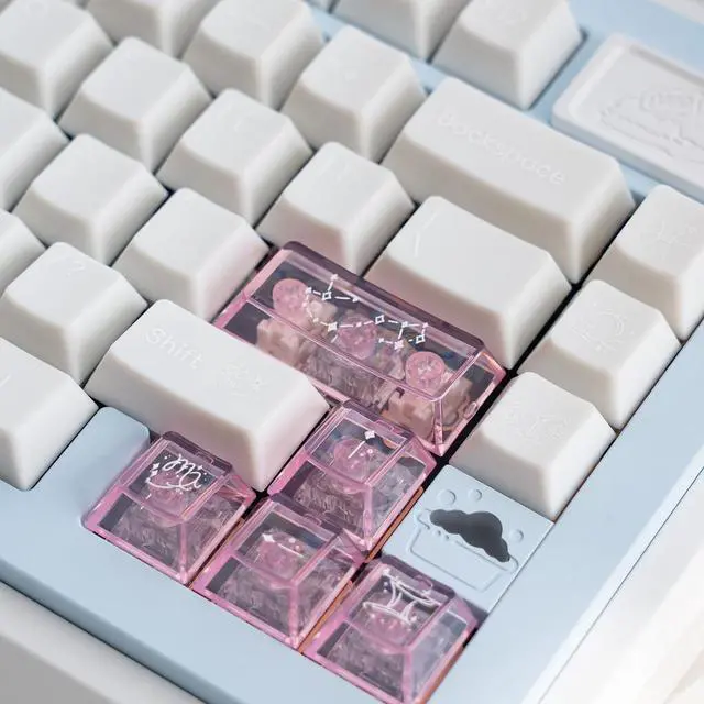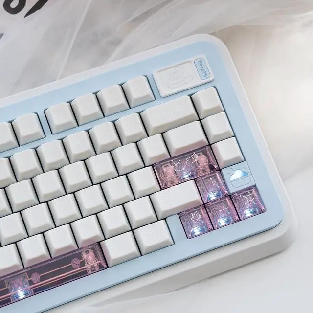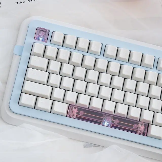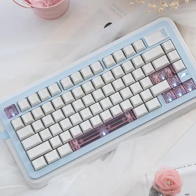 Keycaps Set: The white keycaps are paired with highly pink clear keycaps to enhance the aesthetics of your keyboard. Would be a good choice for those who like minimalist style