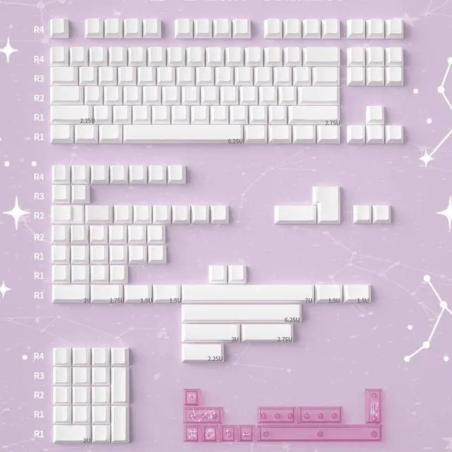 Wide Compatiblity: This set of keycaps consists of a total of 154 keys white pbt keycaps + 10 keys clear keycaps, it includes multiple sizes of keycaps and 7u space bar, fits most 60%, 65%, 75%, 95% cherry mx switches ISO ANSI layout mechanical keyboards