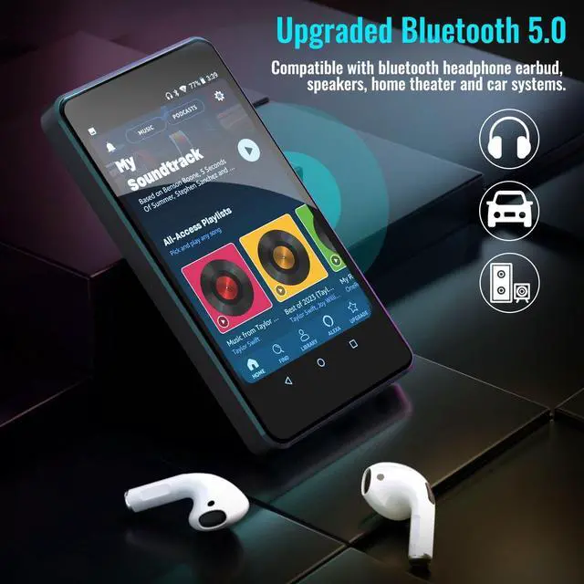 , and provides various song categories, such as Title, Folder, Artist, Album, etc. If any app requires an update, please refer user manual, and Luoran support team will 24-hour standby to send the updated installation file. ^^ MP3 player with Bluetooth and WIFI-The device features both Bluetooth V 5.0 and WiFi for seamless connectivity with headphones, speakers, and car stereos. It provides fast pairing and stable connections, offering a smooth online and offline music experience. ^^ Powered by Android 9.0 -The music player is upgraded to Android 9.0, offering faster performance, improved app compatibility, and smoother operation.