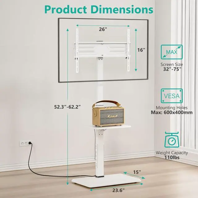 VIEWING ANGLE SWIVEL 60: Conveniently swivel your TV stand +/-30 left or right to easily adjust screen direction, ensuring the best viewing angle anywhere in the roomideal for college students, apartment dwellers, and homeowners ^^