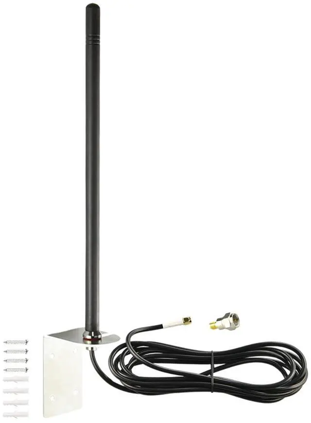 Enhanced 433MHz Signal & Extended RangeOperating at 433MHz with a 3dBi gain and a low VSWR of 1.5, this 433MHz outdoor antenna is engineered to significantly boost signal clarity and reception range. It effectively extends the operational distance for remote controls and receivers, providing more reliable performance for your wireless commands. ^^ Rugged Wall-Mount Design for Any WeatherFeaturing a sturdy wall-mount bracket, this gate opener antenna is built for permanent outdoor installation. Its durable construction is designed to withstand rain and varying temperatures, ensuring year-round reliability for your garage door opener or smart home system.