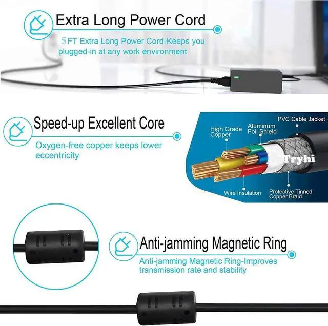 • Package includes: 1x AC Adapter and 1x 5 Feet long Power Cord