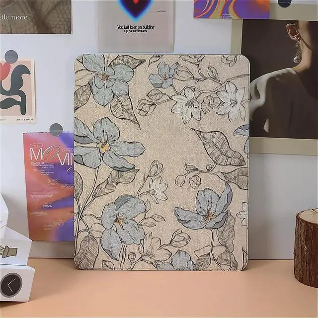 Retro Tulip Case Compatible with iPad 9th 8th 7th Generation 10.9 Inch 2021/2019/2018,Funny Cover with Trifold Stand + Pencil Holder for Boys Girls,iPad Air6 11inch 2024