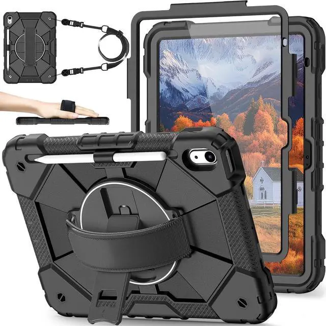 • 360 ROTATING STAND: iPad case 10th / 11th generation 360 Rotating Stand with hand strap is designed for the ipad 10.9 case, A16 iPad case providing different angles to meet your requirement, that will be convenient for viewing, typing and drawing, testing in outdoor