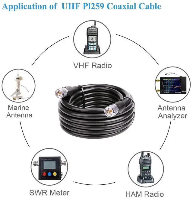 ^^ Applications: This RG8 pl259 male to male coax cable could be used for CB ham radio, HF amateur radio, marine boat VHF radio, antenna, swr meter, surge protector, Walkie Talkies