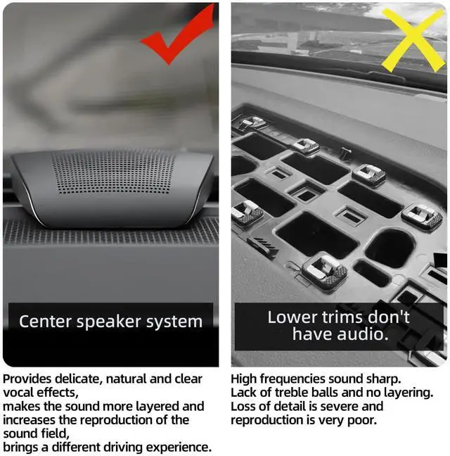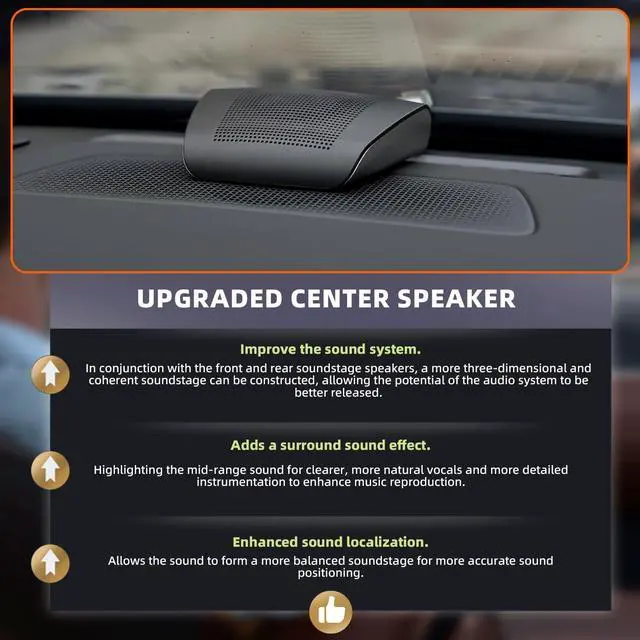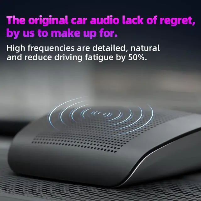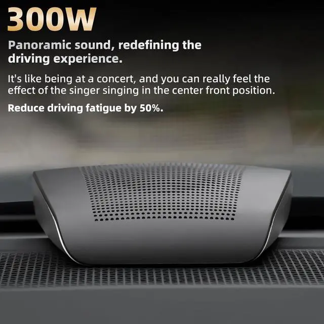Professional car audio quality 300W peak power+4 ohms impedance, covering the full frequency range of 600-20000Hz, with clear high notes, precise mid notes, and deep bass, comparable to the sound effects of modified audio. ^^ Universal non-destructive installation Specially optimized for the original car center console position, no cutting installation, comes with a universal fixed bracket, and can be installed without the need for professional tools. ^^ Durable and safe design The shell is flame-retardant and explosion-proof, and the mesh cover is dustproof and impact resistant, ensuring worry free driving safety.