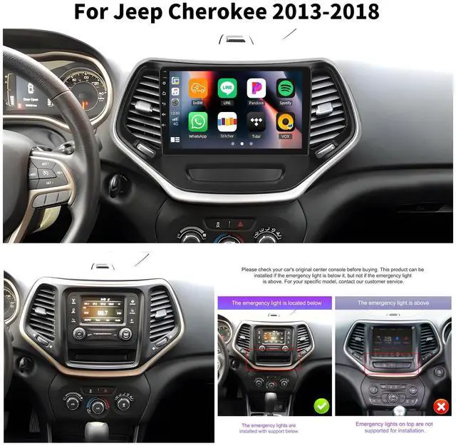 Android 15 Car Stereo for Jeep CherokeeThe carplay car stereo fits for Jeep Cherokee 2013 2014 2015 2016 2017 2018. Android 15 system, 10.1 '' Capacitive touch screen, screen size is 228mm*218mm*131mm, 2G RAM+64G ROM, running smoothly in colleges and universities. A variety of EQ sound effects scene selection. Capacitive touch screen, 1024*600 high resolution, Support 1080p video, will provide you the Excellent experience in the car ^^ Built-in Android Auto&Carplay&Mirror LinkTouchscreen car radio for Jeep Cherokee support wired & wireless Carplay and Wired Android Auto. Just connect via USB or Bluetooth, you can project the contents of your phone to the large screen of the host.