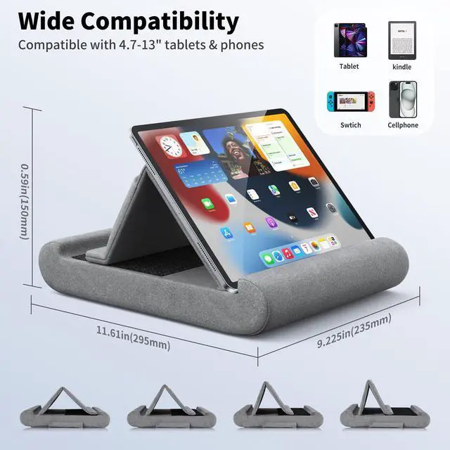 ^^ Wide Compatibility: The Pillow Tablet Stand is compatible with 4.7 and 13 inches tablets, mobile phones and Switch, such as iPad A16, iPad Air (M3), iPad Pro 13 / 12.9 / 11/ 9.7, iPad 1/2/3/4, iPad Air 2, iPad Mini 1/2/3/4/5, Surface Pro series, iPhone 17 16 15 14 13 12 11 Pro Max Plus mini, Surface Pro, Switch, books and more 4.7 -13 inches devices.