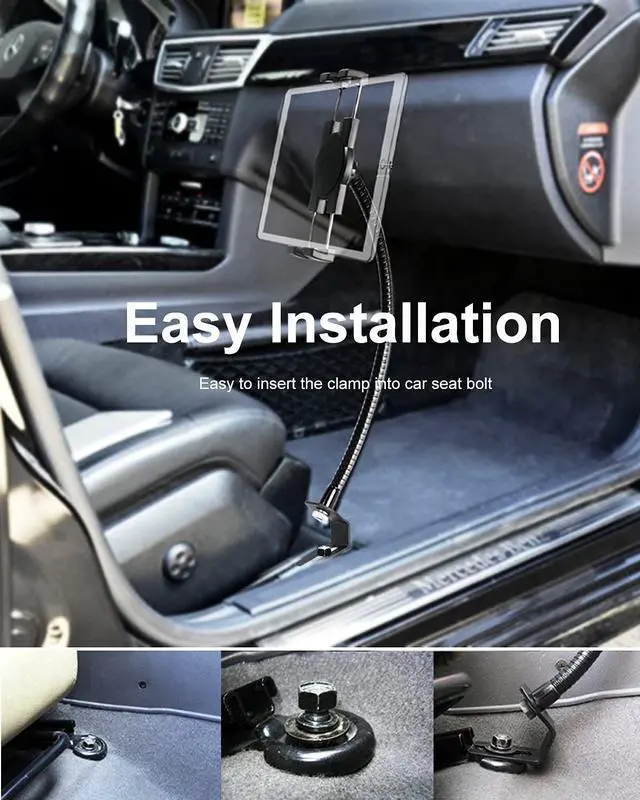 ^^ Fully Adjustable: Freely adjust your tablet on the iPad mount to your most comfortable viewing position with the flexible and bendable gooseneck arm. Even if it is fixed on the rail under the passenger seat, the direction can be adjusted at any time, and it is easy to switch from the driver's viewing angle to the passenger's viewing angle.