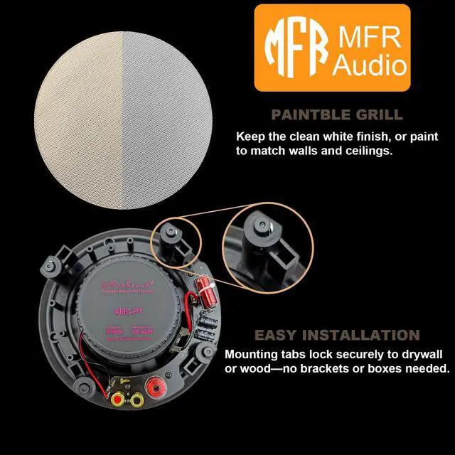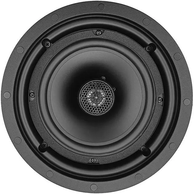 2-way in-ceiling speaker with a 6.5" PP mica cone woofer and a 1" Japanese ferro-fluid cooled titanium dome tweeter which can swivel 30 degrees with all directions. ^^ Perfect integration between the tweeter and woofer is achieved through a 12dB crossover network with a compensation network. ^^ An easy-to-install in-ceiling speaker system that has magnetic grilles and high sound quality designed to meet various custom installation requirements. ^^ Easy one-cut, drop-in installation with Perfect Fit templates, a precision flange, pre-construction brackets (sold separately), and rotating cams to secure the speaker and ensure vibration-free efficiency without any extra assembly.