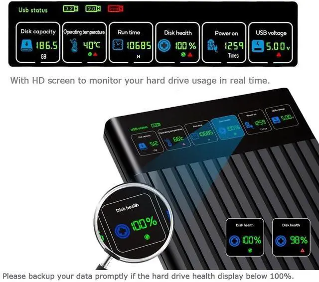 HWAYO Portable External Hard Drive With HD Screen Display1. HD Screen Design - This external hard drive with HD screen display to monitor your hard drive usage in real time.