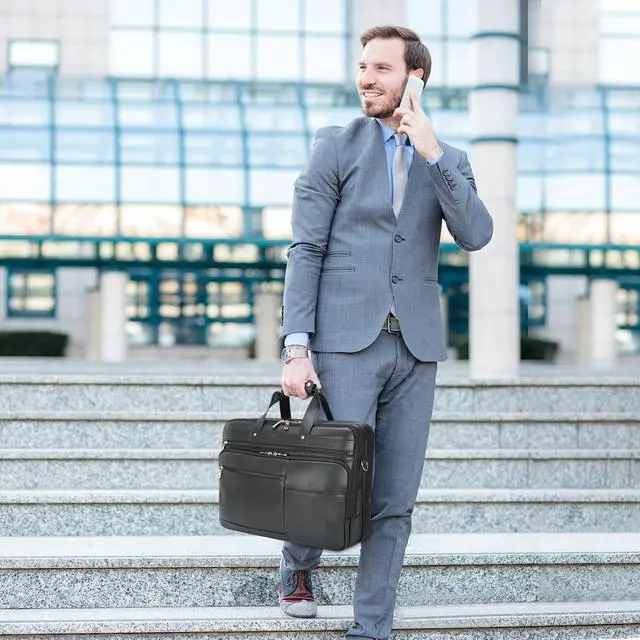 Large Capacity & Considerable Structure The large briefcase for men has 3 large compartments and variety of pockets for separating computer add-ons, files, notes, pens and other office supplies. Laptop compartment fits 17.3 inch laptop.