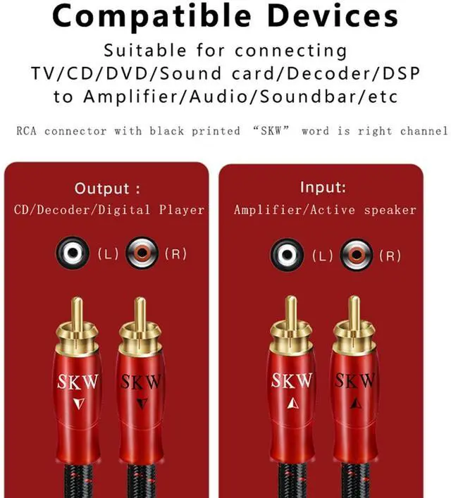 [Compatible devices] Devices with L/R (left/right) 2RCA connectors support all analog signal connections. It is suitable for connecting DSP, sound card, CD, DVD to power amp or sound.