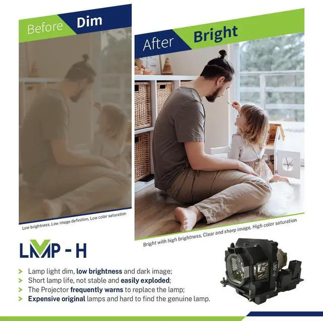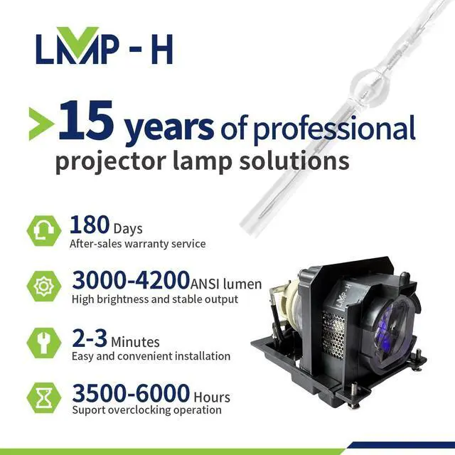 Compatible Models: for Nec MC302X MC302XG MC332W MC332WG MC342X MC342XG MC372X MC372XG MC382W MC382WG MC422X MC422XG MC423W MC453X ME342U ME342UG ME372W ME372WG ME382U ME382UG ME383W ME402X ME402XG ME403U ME423W ME453X NP-MC332WJL NP-MC423W NP-MC453X NP-MC453XJL NP-ME372WJL NP-ME382UJL NP-ME383W NP-ME402XJL NP-ME403U NP-ME403UJL NP-ME423W NP-ME423WJL NP-ME453X ^^ LMP-H projectors' bulbs are made of the highest quality materials and have the same functions as your original bulbs. They are perfectly matched and compatible with your projector. ^^ All projector bulbs are equipped with enclosures instead of bare bulbs. Our bulbs feature an optimized filament design, which helps prevent the machine from overheating or experiencing abnormal temperatures, thereby protecting the bulbs and the projector. ^^ When installing a new light bulb, wait for the old bulb in the projector to cool down before replacing it. And you need to be aware of the connector make sure it connected well. ^^ giving you great peace of mind. If you have any questions about the order, please feel free to contact our dedicated support team at any time. We will be happy to answer them for you promptly