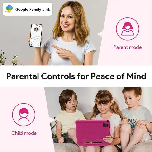 ^^ KID-FRIENDLY AND PARENT-APPROVED: This children's tablet comes pre-installed with Google Kids Space and is designed with children in mind, including apps for reading, games, learning, and crafts. The parental control mode allows content filtering, setting educational goals, and time limits for a safer online environment.