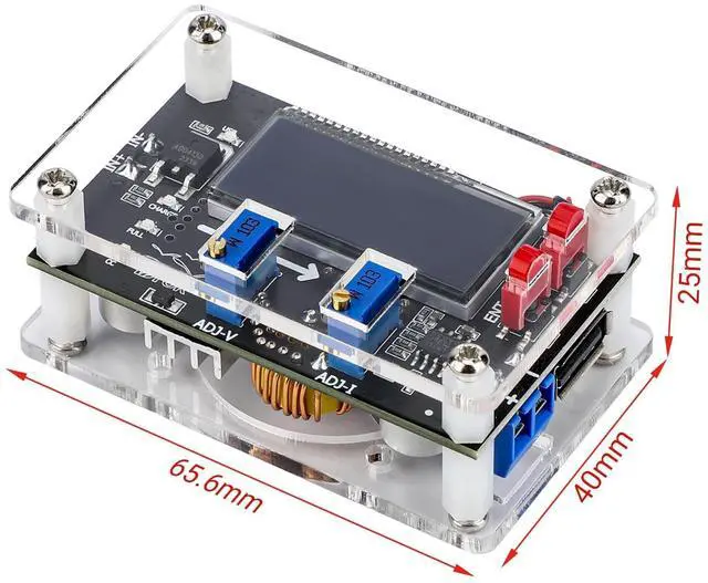 Come with protective shell, Large LCD screen, blue background and white digit, can be clearly seen in any angle, displaying voltage and current simultaneously. ^^ A constant voltage and current module, Input voltage could be 6-32V; Output voltage could be 1.25 ~32V; input side must be 1.5 higher than output side; max output Power is 75W. ^^ Made of imported MP2304 chip, high conversion efficiency of 96%, when current is higher than 3A or 35W, please enhance heat dissipation. ^^ With voltage-calibration and current-calibration, designed with USB interface, it brings you many conveniences in most occasions.