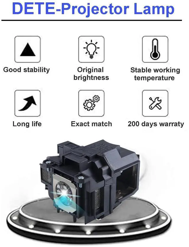 Features: This is a projector bulb used in for ELPLP88 ELPLP87 ELPLP78 V13H010L88 V13H010L78 V13H010L87, not just a bare bulb but a complete bulb with a shelf. The new high-quality A+ wick inside the bare bulb is as eye-catching and clear as the original bulb. The outer shell is made of more durable materials and stronger.