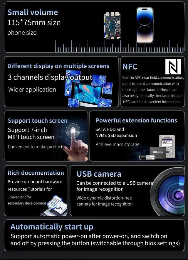 Other: USB 3.0, USB 2.0, UART, GPIO, IIC, SPI, RTC, NFCOS: Windows 10 / 11, Linux.