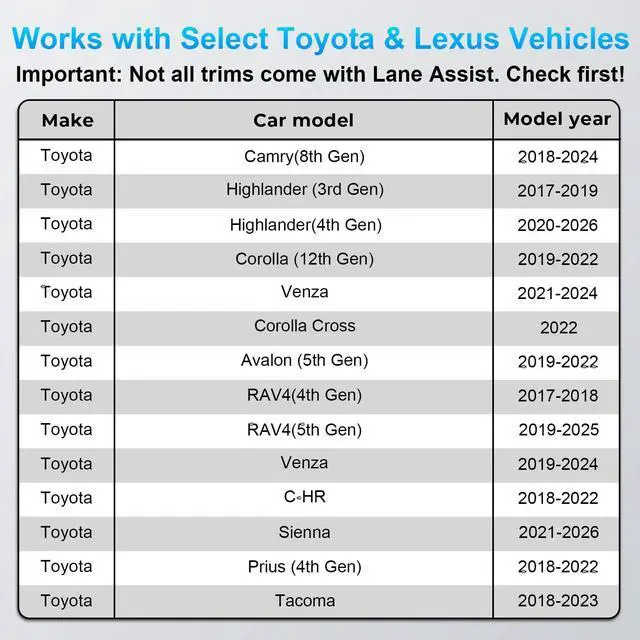 Please note: Not compatible with the 12-pin auto-dimming mirror connector located directly behind the rearview mirror, as it does not supply power. ^^ This dash cam power adapter is specifically designed for Toyota and Lexus vehicles equipped with the Lane Trace System (TSS 2.5 ) using the gray 12-pin Lane Trace connector. The connector is easy to locate and distinguish. Please confirm your vehicles connector type before ordering. If you are unsure, contact Mangoal Support for assistance. ^^ 3