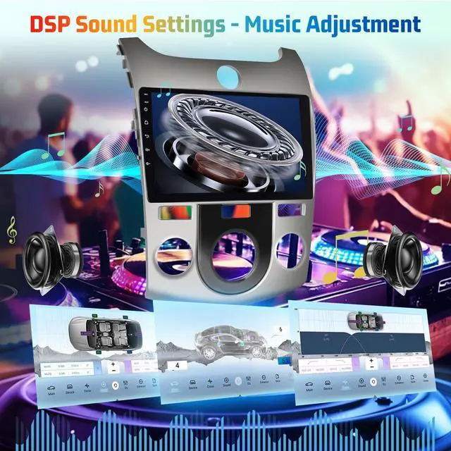 GPS Navigation: For Kia Forte stereo stay connected on the move with 5G WiFi, enabling rapid downloads and buffer-free streaming of online maps, music, and content. The highly accurate GPS navigation system, powered by up-to-date mapping data, guides you precisely to your destination, even in the most complex road networks. ^^ DSP Sound Processor and
