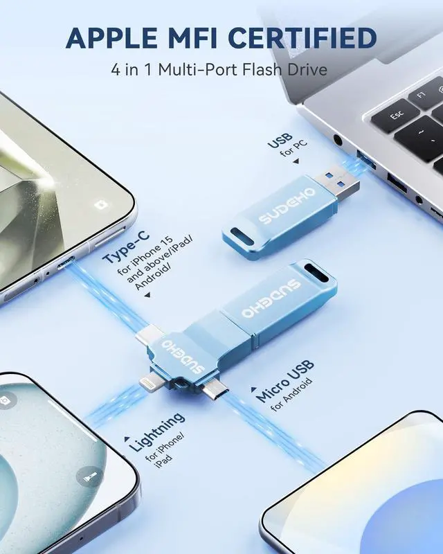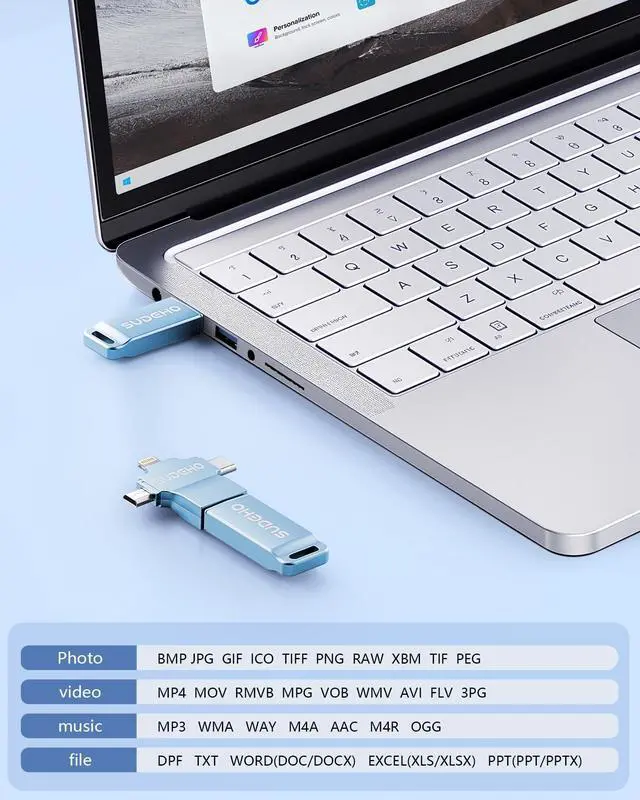 MFi Certified iPhone Flash Drive Wide CompatibilityThis MFi certified photo stick for iPhone works smoothly with iOS devices (iOS 12.1 and above). Simply install theROSPEapp from the App Store to enjoy quick and secure backups. Perfect as a USB flash drive for iPhone and iPad, giving you reliable storage without the worry of data loss. ^^ 128GB/256GB/512GB Large Capacity USB StorageChoose from 128GB, 256GB, or 512GB to meet your storage needs. This iPhone memory stick helps free up space instantly, storing thousands of photos, videos, music, and documents.