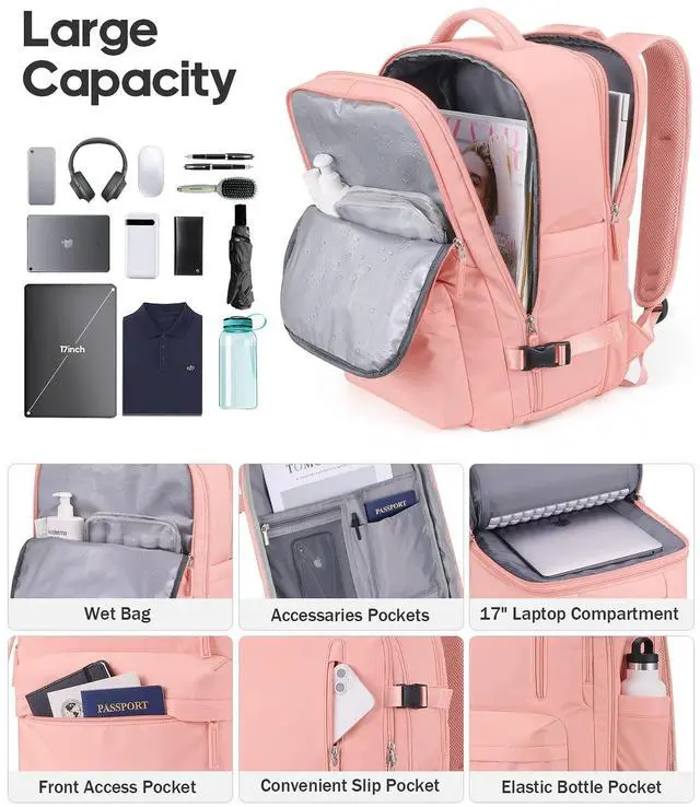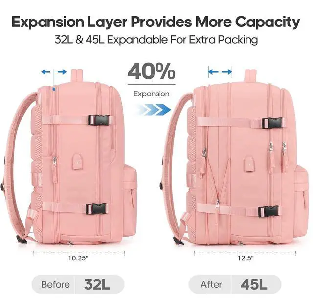 LARGE CAPACITY AND EXPANDABLEThis suitcase backpack for travel features zipper expansion, which can expand up to 42L for 3~7 days of travel essentials. The spacious main compartment with straps to secure travel supplies, one separate laptop compartment for a 17-inch laptop, and a hidden anti-theft pocket on the back protect your valuable items. It's perfect for travel, business, camping, or cruises with a 20*14*7" size. Please check the size before purchasing. ^^ FLIGHT APPROVED CARRY ON BACKPACKThis laptop backpack for men is designed for travel, you can travel anywhere you want, and two padded handles for easy switching between backpack and suitcase.