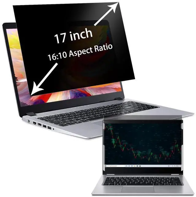FILTER DIMENSIONS- WIDTH: Compatible with 17" For HP/Dell/ASUS/Samsung/Lenovo/Acer/MSI/Razer Blade/LG Gram 17" 16:10 Aspect and other laptop brands with 16:10 widescreen ^^ RELIEVE EYE FATIGUE AND HELP YOUR SLEEVE BETTER- genius 6-layer design, our privacy screen protector 100% Block Hazardous UV light and effectively block the most hazardous HEV blue light of 380-495nm and Electromagnetic radiation, help you block electronic hazard ^^ ANTI GLARE, ANTI FINGERPRINT COATING-unlike other glass or film cover, our anti blue light screen protector coming with anti glare matte layer and OLEOPHOBIC COATING, effectively reduce the visual interference caused by strong light from the screen while in a high light conditions and block fingerprint on the screen ^^ You can get screen protector*2 If you have any questions, please contact us, our seller support team will help you in time