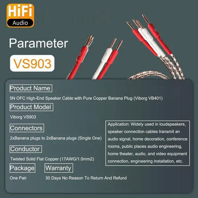 Say goodbye to signal decay and enjoy a high-quality sound experience. ^^ Versatile applications - This High-end Speaker Cable is suitable for various applications. Whether you need a speaker connection cable for your home theater, audio and video equipment, conference room, public places audio engineering, or home decoration, this cable can meet your needs. Its wide compatibility and reliable performance make it a versatile choice for any audio setup or installation. ^^ Excellent value for money - With this Viborg VS903 Stereo Hifi Speaker Wire, you get a high-quality speaker cable at an affordable price.