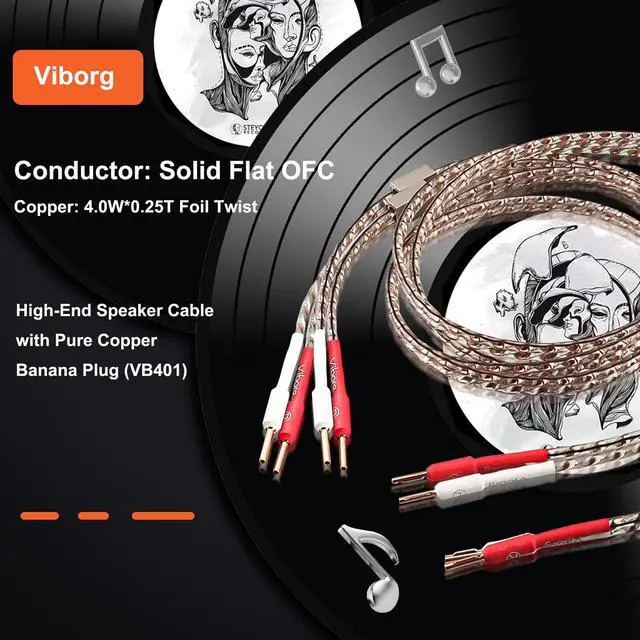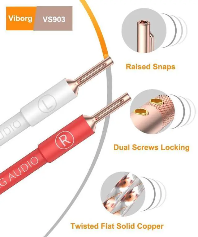 High-quality construction and performance - The Viborg VS903 Stereo Hifi Speaker Cable is designed with a heavy-duty build and utilizes twisted solid flat OFC (17AWG/ 1.0 mm2) conductors, ensuring optimal signal transmission and durability. The VB401 Pure Copper Banana Plugs provide a secure and reliable connection with your speakers. With this premium speaker wire, you can expect enhanced audio performance and a more detailed and dynamic sound reproduction. ^^ Exceptional build quality and aesthetics - The Viborg Hi-end Speaker Cord boasts excellent build quality, featuring a wear-resistant, soft, and strong wire body.
