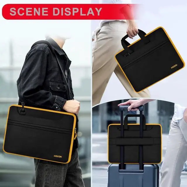 Hseok Laptop Shoulder Bag 15.6-16 inch Case,Water-Resistant Shockproof Computer Handbag with Small Case Compatible with MacBook Pro/Neo 16",Mac Air 15 M5, XPS 15/16 and most 15.6-16 PC,Black-yellow