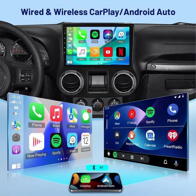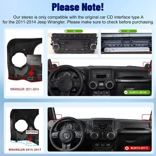 Carplay & Android Auto]: This Jeep Wrangler radio is compatible with wireless Carplay and Android Auto, seamlessly pair your phone to access navigation, stream music, and make hands-free calls directly. Easily activate Siri or Voice Assistant to operate apps and enjoy a hands-free and safer driving experience ^^ [GPS