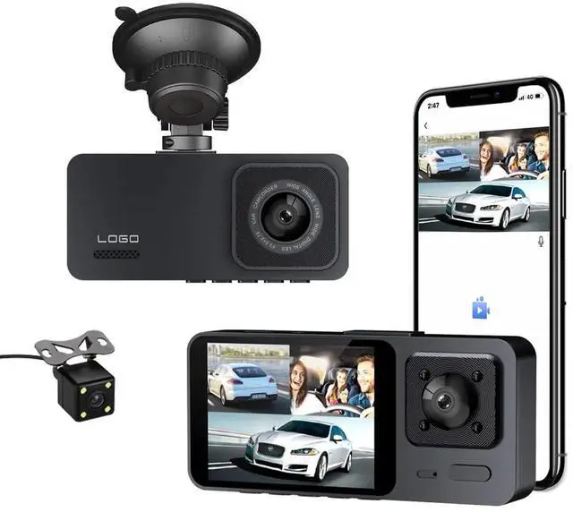 Recording System: This dash camera offers comprehensive monitoring with front, rear, and interior cameras, ensuring no blind spots during accidents. The interior camera is perfect for keeping an eye on your baby or kids, while the rear camera provides clear visibility when reversing. ^^ Real-Time Monitoring with