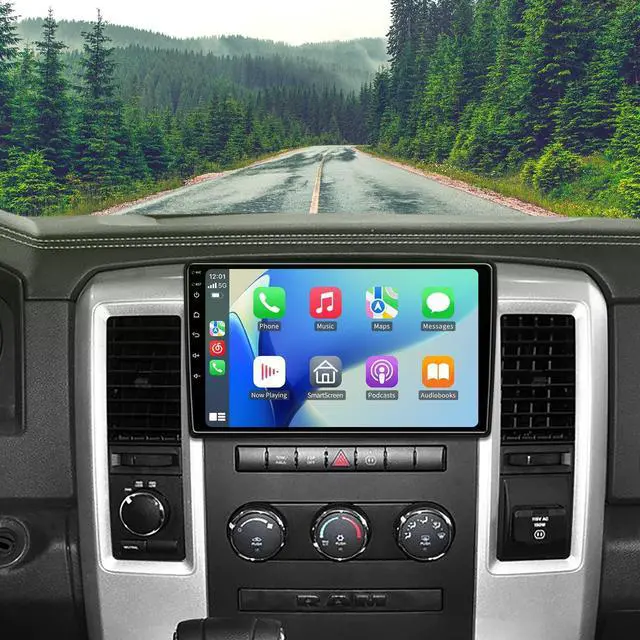 32GB capacity memory, so you can enjoy downloading your favorite songs and videos. The 10.2 -inch screen of this Car Radio Stereo provides a larger display area, allowing for better control and convenient operation. ^^ Wireless Carplay & Android AutoThis Ram 1500 radio offers both wired and wireless support for CarPlay and Android Auto, ensuring seamless integration with your smartphone. You can easily wake up Siri or Google Assistant to operate your Ram stereo. By simply using voice commands, you can conveniently control various apps and functions without having to take your hands off the wheel.