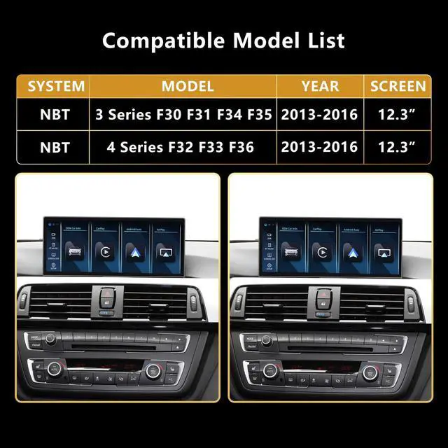 Bonroad 10.25 '' Multimedia Screen CarPlay Android Auto GPS Navigation For BMW 1/2/3/4 Series F20 F21 F23 F30 F31 F32 F33 F34 F36 with NBT SystemFor BMW 1 Series F20 F21 (2011-2016) Original NBT SystemFor BMW 2 Series F23 (2013-2016) Original NBT SystemFor BMW 3 Series F30 F31 F34 F35 (2013-2017) Original NBT SystemFor BMW 4 Series F32 F33 F36 (2013-2017)