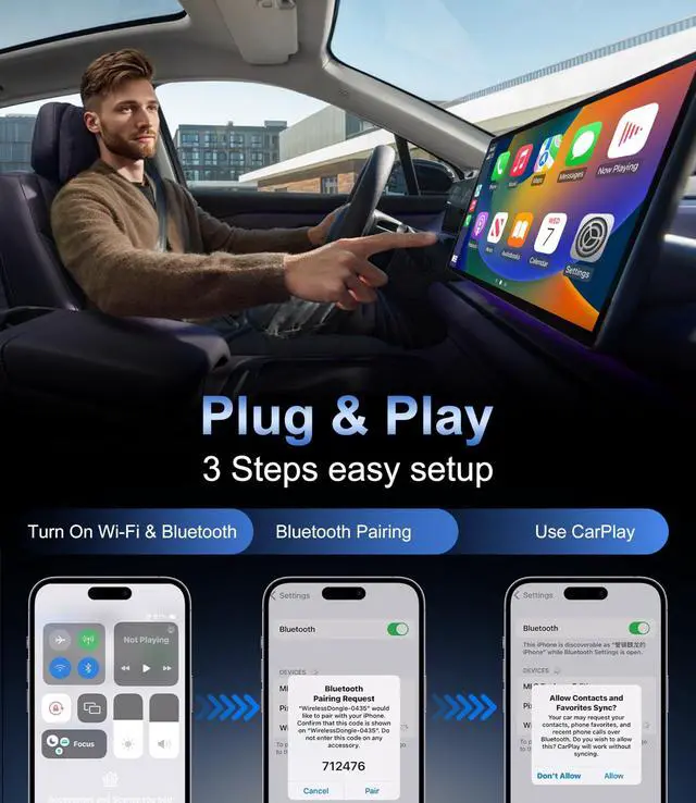 Heat-Be-Gone: Compact & Durable Our USB port and metal casing have been rigorously tested over 50, 000 times, ensuring a lifespan 3 times longer than plastic receivers. Additionally, the car adapter made of specially formulated 5.0 Premium Ultra-Light Aluminum Alloy Donglel enhances heat dissipation for improved durability. No freezing, no disconnections! ^^ Dual System-Wireless CarPlay & Android Auto in One! The 2 in 1 Wireless CarPlay and Android Auto Adapter converts your factory wired system into a wireless experience. Its perfect for families using both iPhone and Android phones, allowing effortless switching without unplugging or swapping cables. ^^ Universal Compatibility &Smart OTA UpdatesThis adapter is compatible with over 1, 000 vehicle modelssupporting 800+ with wired CarPlay and 500+ with wired Android Auto. Works with iPhone 6 or later and Android 11 or above, enabling effortless switching between different operating systems. Apple CarPlay Wireless Adapter supports remote firmware updates (no computer needed) and is future-proofautomatically adapting to iOS/Android updates. ^^ Plug and Play with